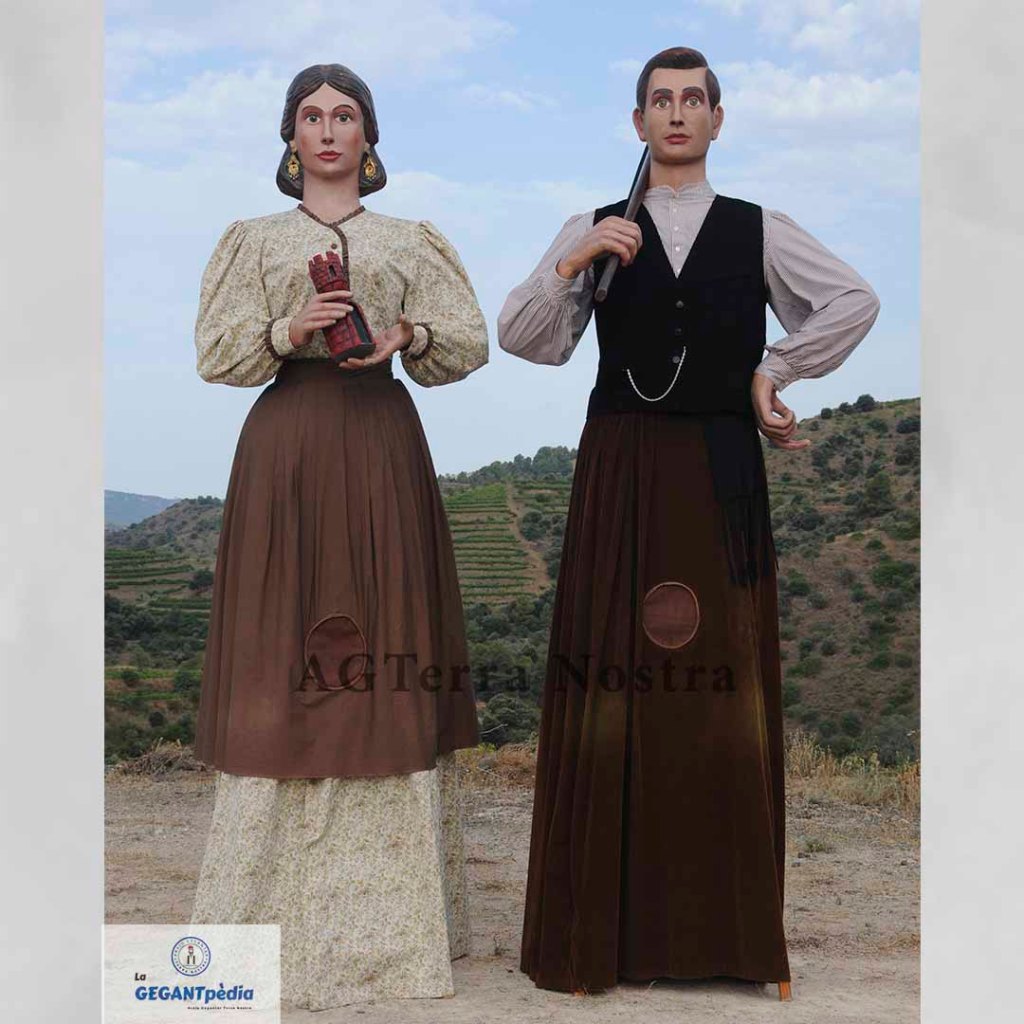 Representen una parella de joves pagesos prioratins. Ell du el nom de la pedra ferrosa típica del terme. El nom de la geganta va clarament lligat a l’etimologia del poble: rememora la torre Roja, una antiga fortificació que tenia la utilitat de torre de vigilància i comunicació amb indrets veïns.